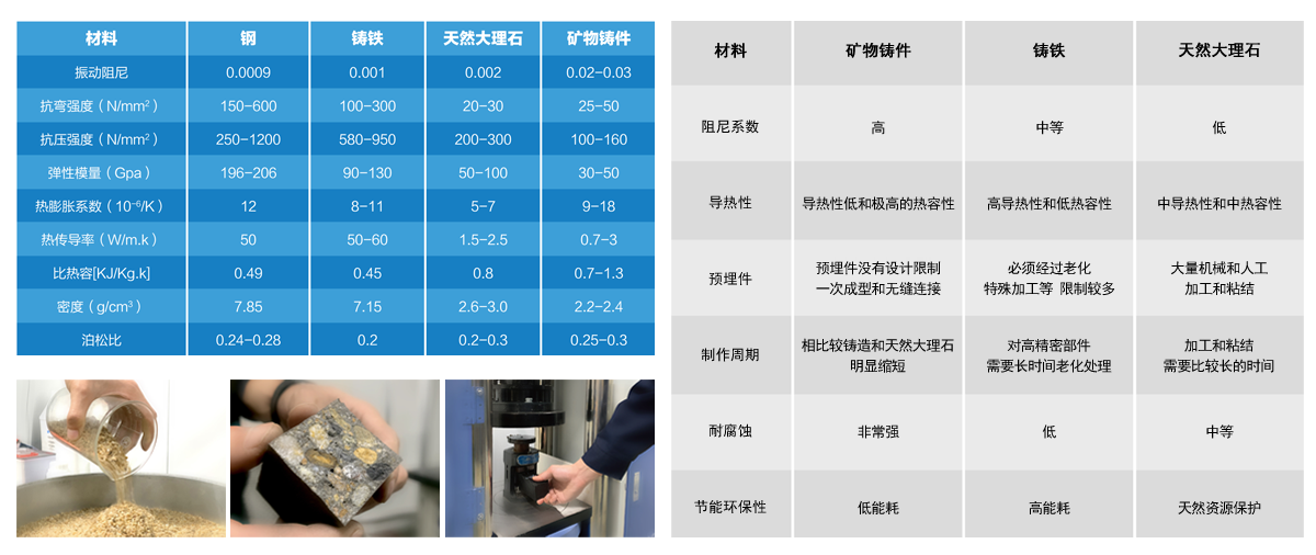 礦物鑄件的吸振性要比傳統(tǒng)的鑄鐵強10倍,特別是對大幅度的振動,礦物鑄件具有較強的吸振能力。馬達、電機以及運輸途中產(chǎn)生的振動對礦物鑄件影響較小,可以很好地保證機器的精度。使用礦物鑄件做機座的機床,在使用過程中的振動對機座幾乎不產(chǎn)生影響,從而保證了機床的精度,提高了加工工件的精度。