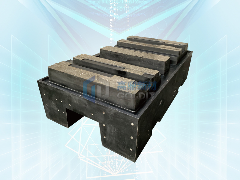 數控機床床身 采用GD-005配方,是一種使用玄武巖、石英砂、粉煤灰等原料與一定量的改性環(huán)氧樹脂粘結劑混合制作而成的新型材料。